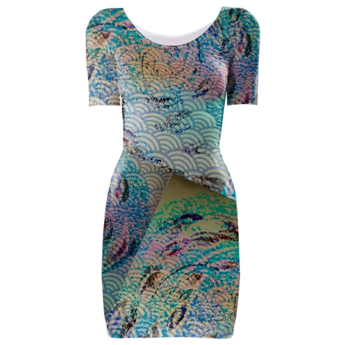 Tight fit scoop neck bodycon dress with set-in sleeves.