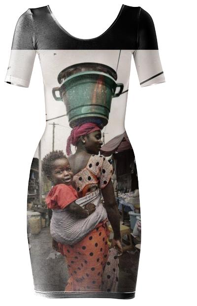 Tight fit scoop neck bodycon dress with set-in sleeves.