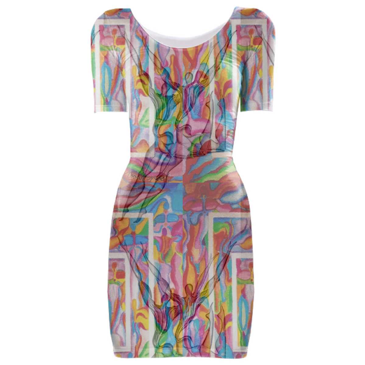Tight fit scoop neck bodycon dress with set-in sleeves.