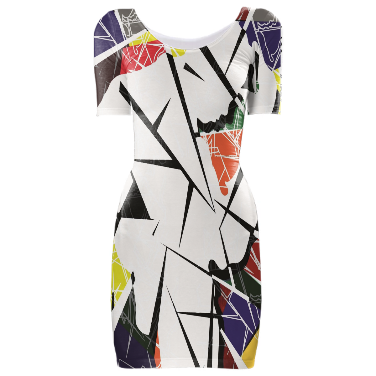 Tight fit scoop neck bodycon dress with set-in sleeves.