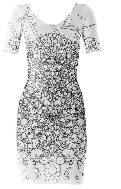 Tight fit scoop neck bodycon dress with set-in sleeves.