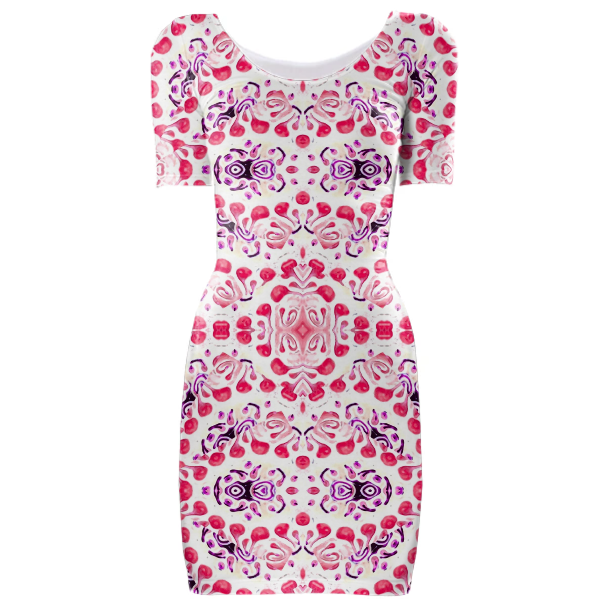 Tight fit scoop neck bodycon dress with set-in sleeves.