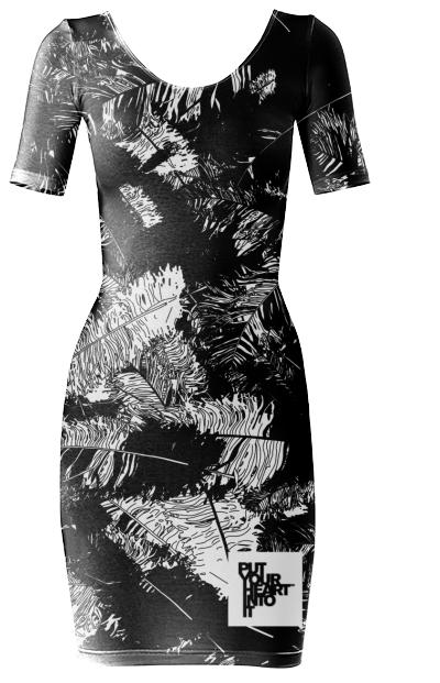 Tight fit scoop neck bodycon dress with set-in sleeves.