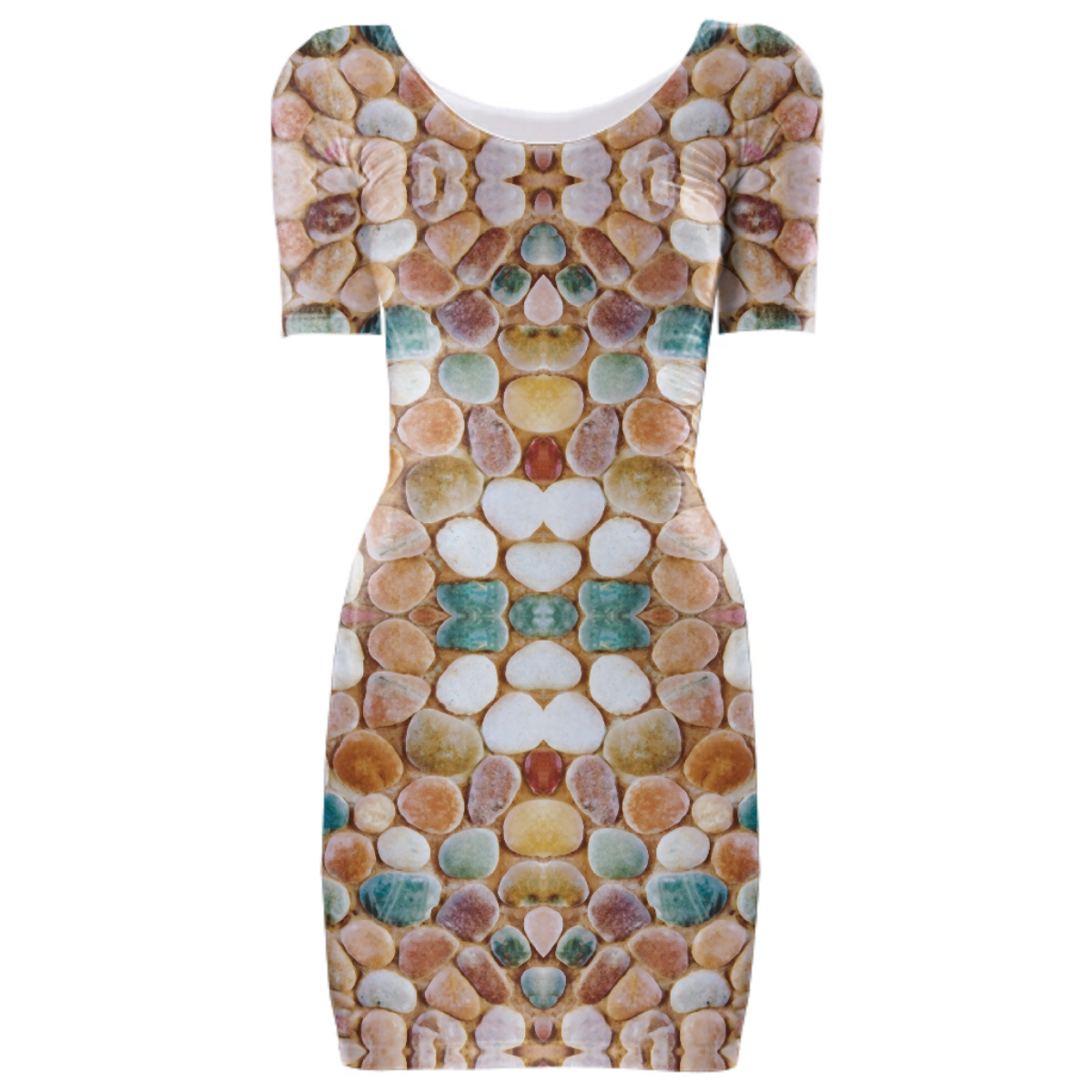 Tight fit scoop neck bodycon dress with set-in sleeves.