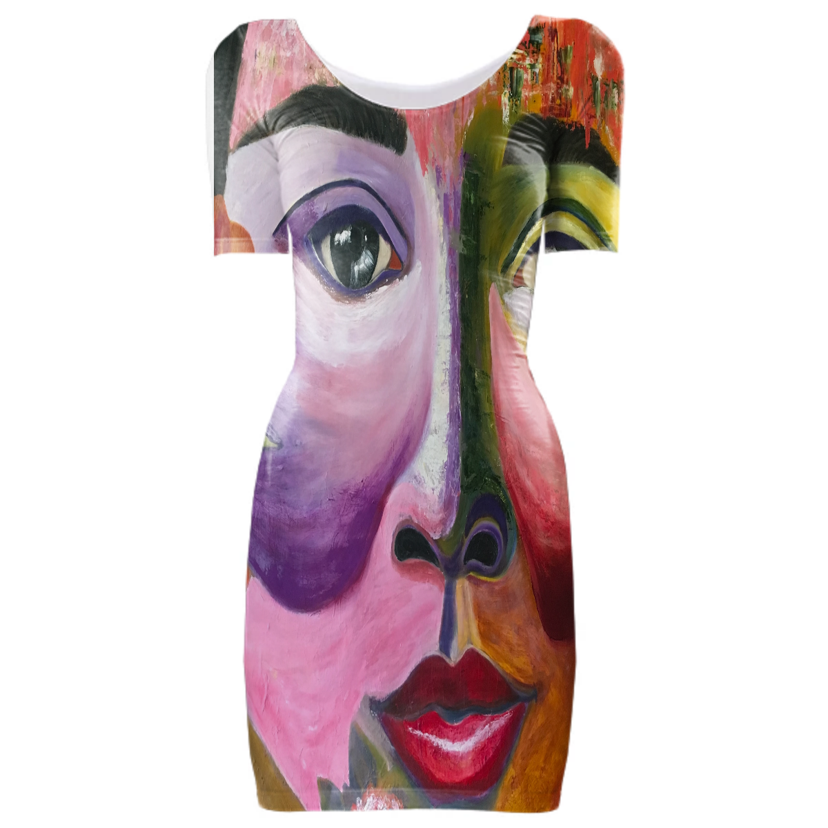 Tight fit scoop neck bodycon dress with set-in sleeves.