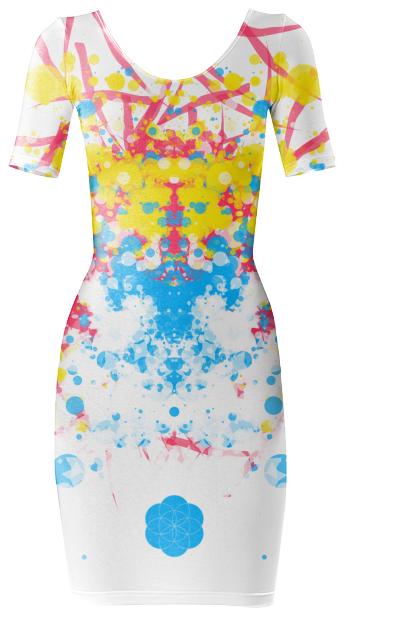 Tight fit scoop neck bodycon dress with set-in sleeves.