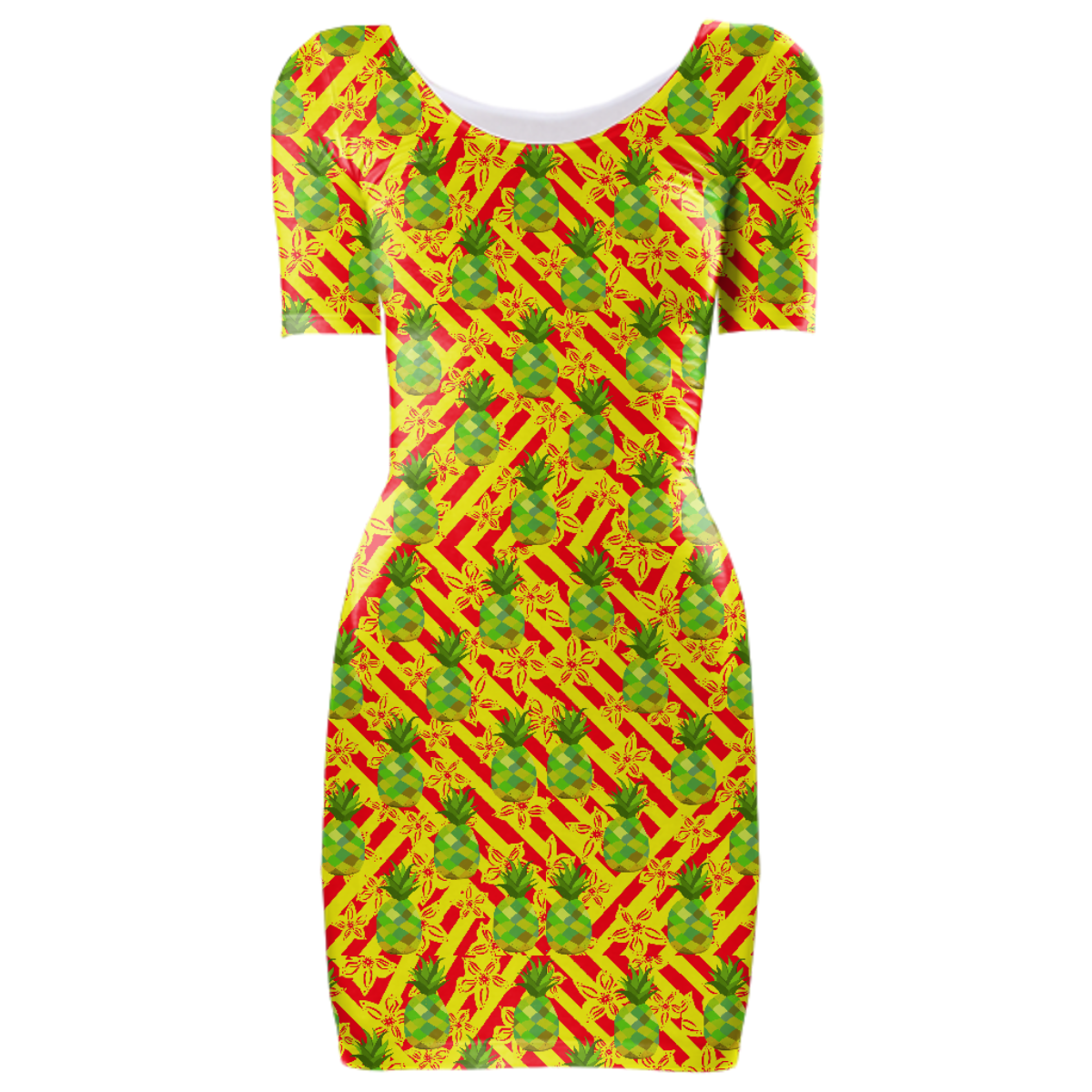 Tight fit scoop neck bodycon dress with set-in sleeves.