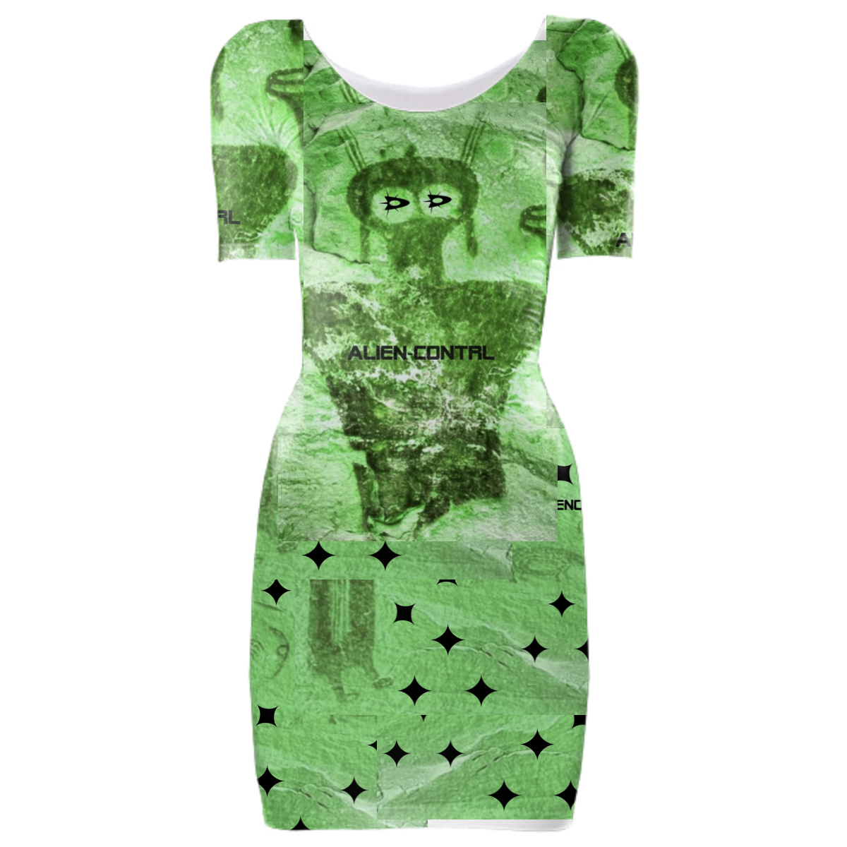 Tight fit scoop neck bodycon dress with set-in sleeves.