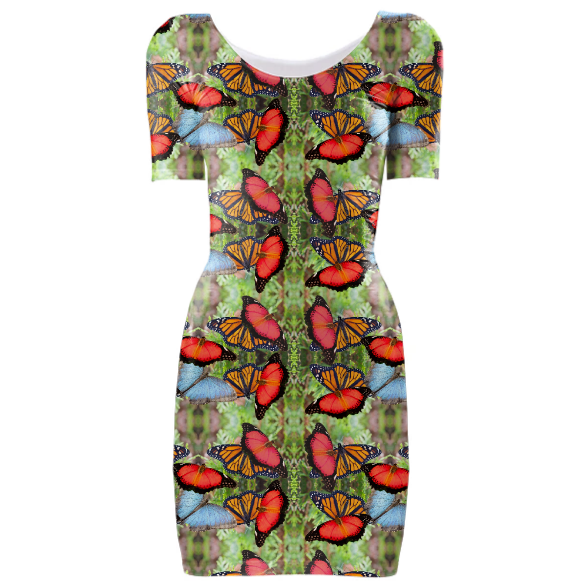 Tight fit scoop neck bodycon dress with set-in sleeves.