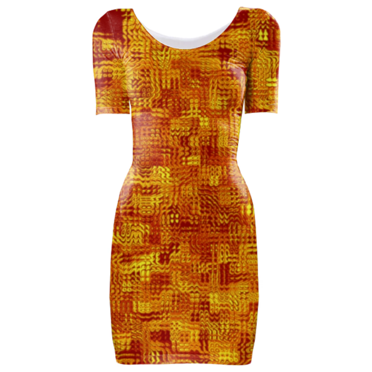 Tight fit scoop neck bodycon dress with set-in sleeves.