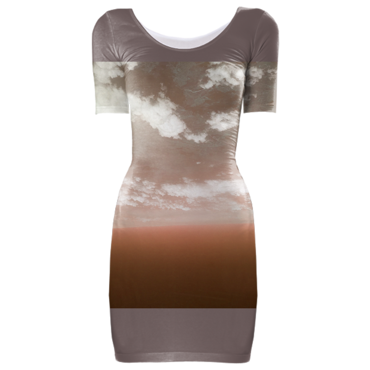 Tight fit scoop neck bodycon dress with set-in sleeves.