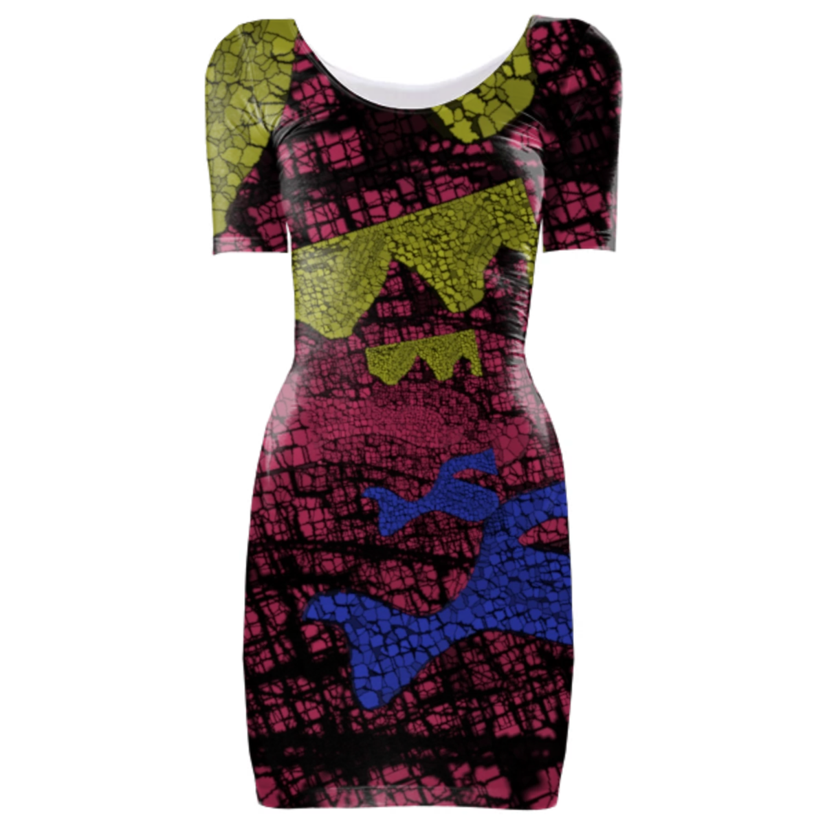Tight fit scoop neck bodycon dress with set-in sleeves.