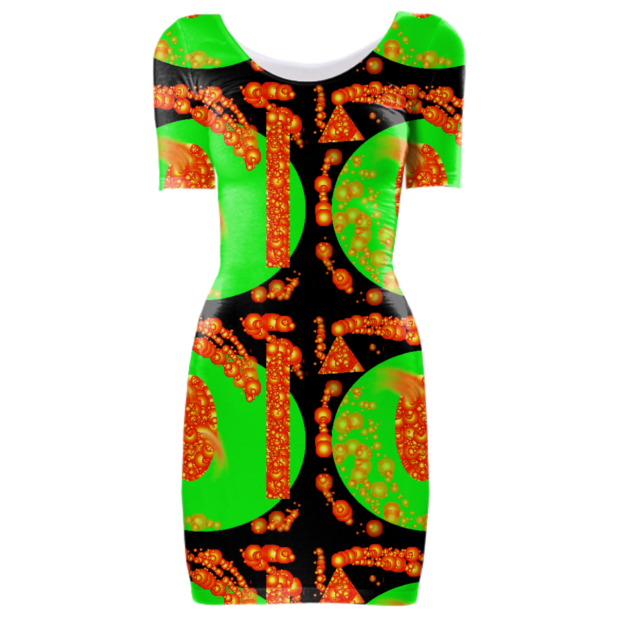 Tight fit scoop neck bodycon dress with set-in sleeves.