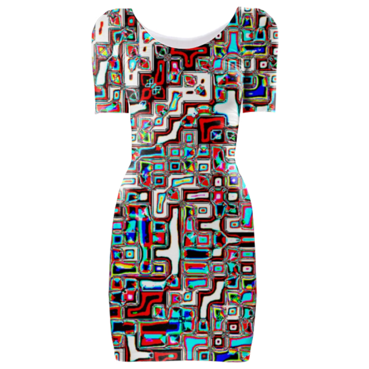 Tight fit scoop neck bodycon dress with set-in sleeves.