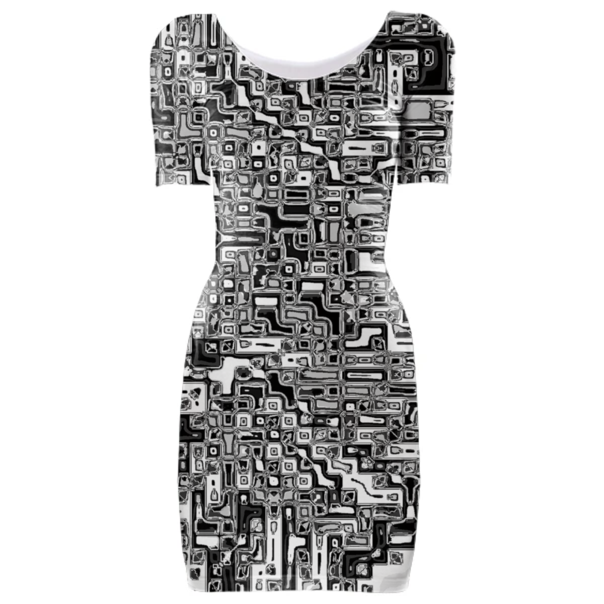 Tight fit scoop neck bodycon dress with set-in sleeves.