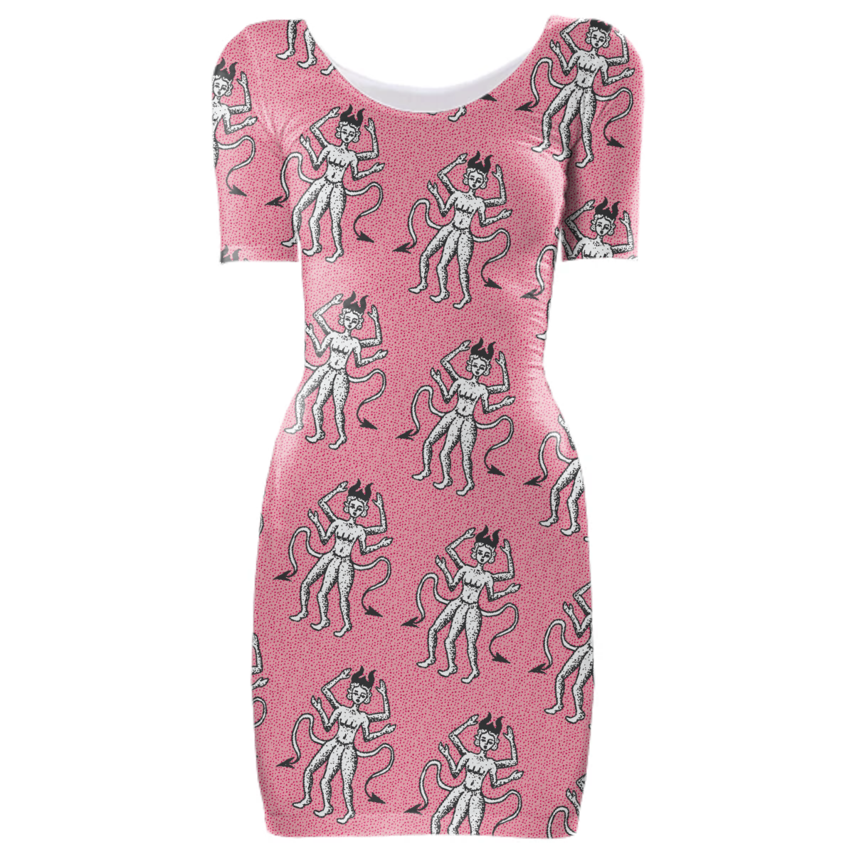 Tight fit scoop neck bodycon dress with set-in sleeves.