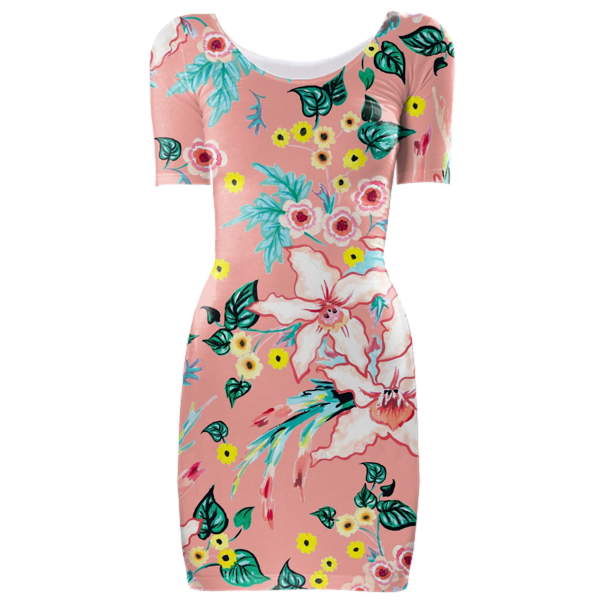 Tight fit scoop neck bodycon dress with set-in sleeves.