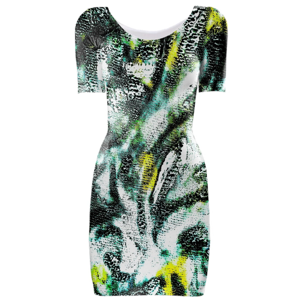Tight fit scoop neck bodycon dress with set-in sleeves.