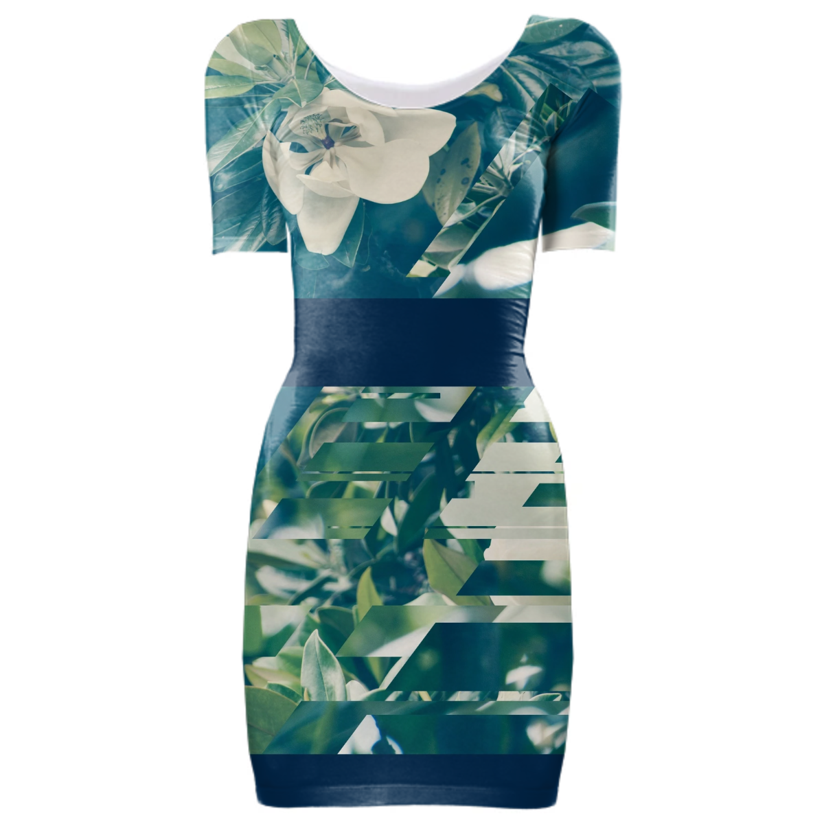Tight fit scoop neck bodycon dress with set-in sleeves.