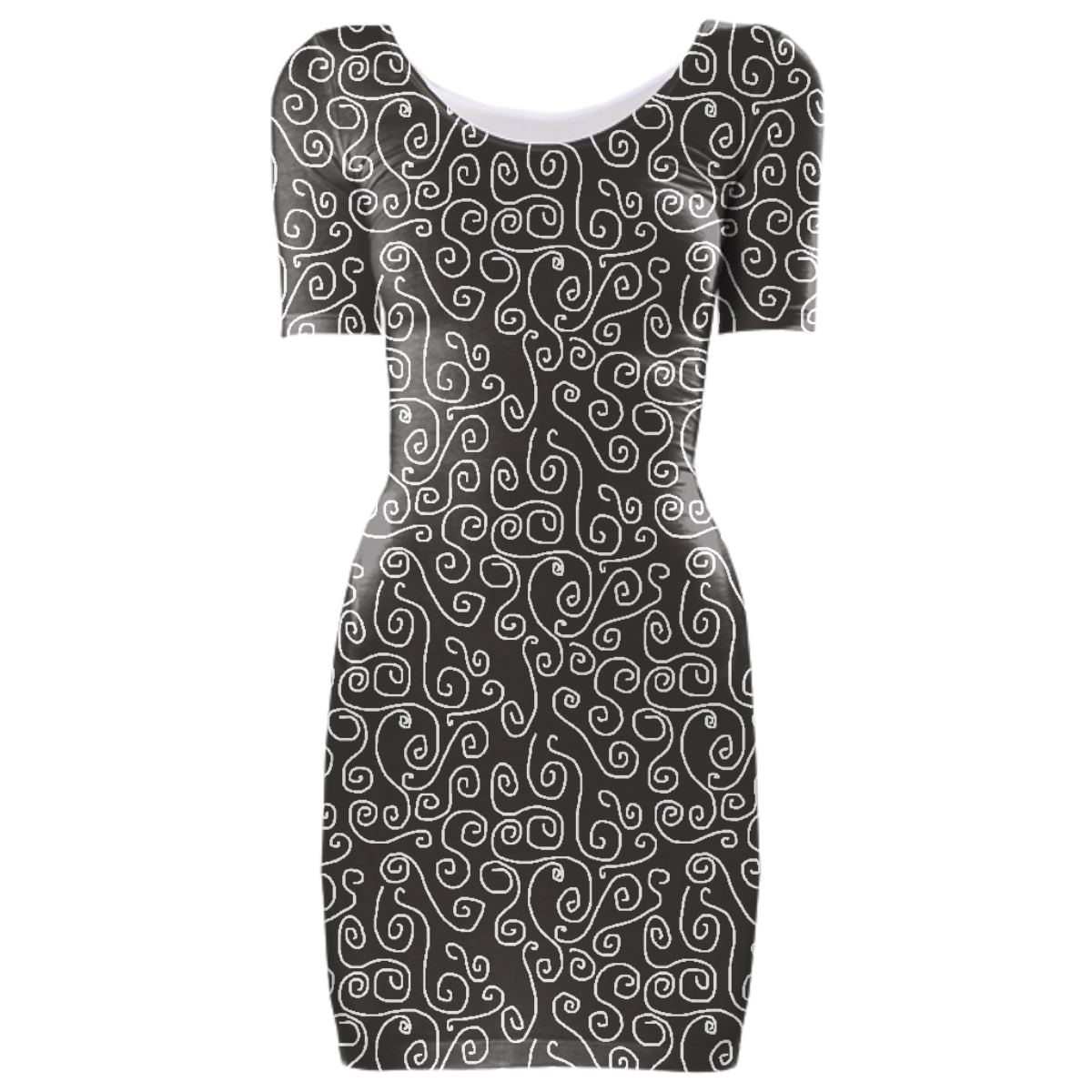 Tight fit scoop neck bodycon dress with set-in sleeves.