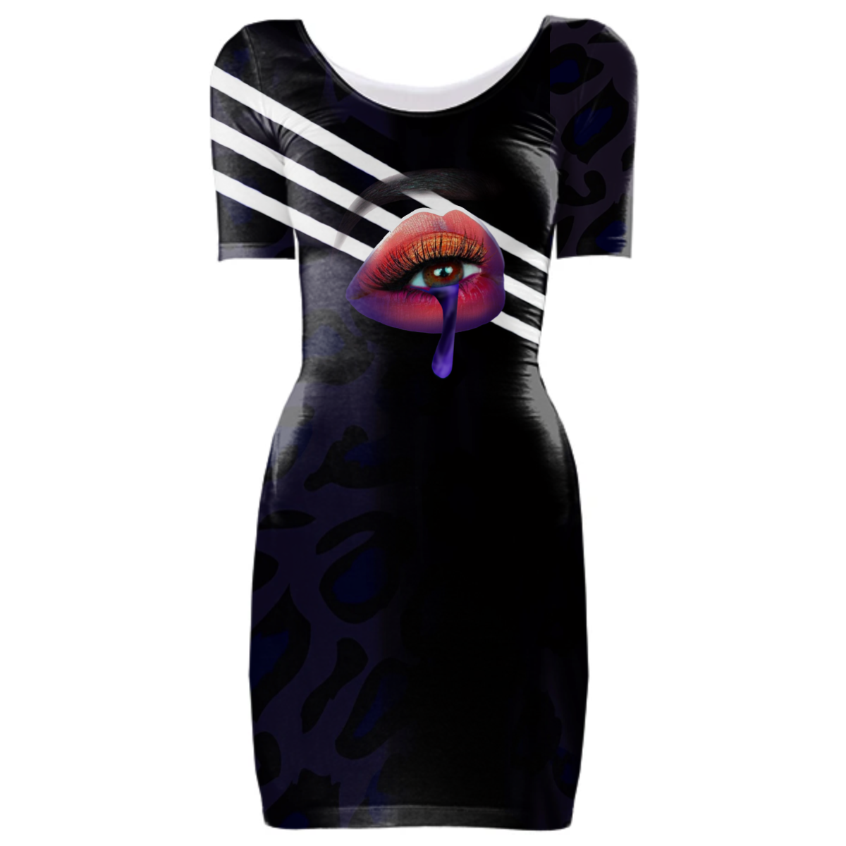Tight fit scoop neck bodycon dress with set-in sleeves.