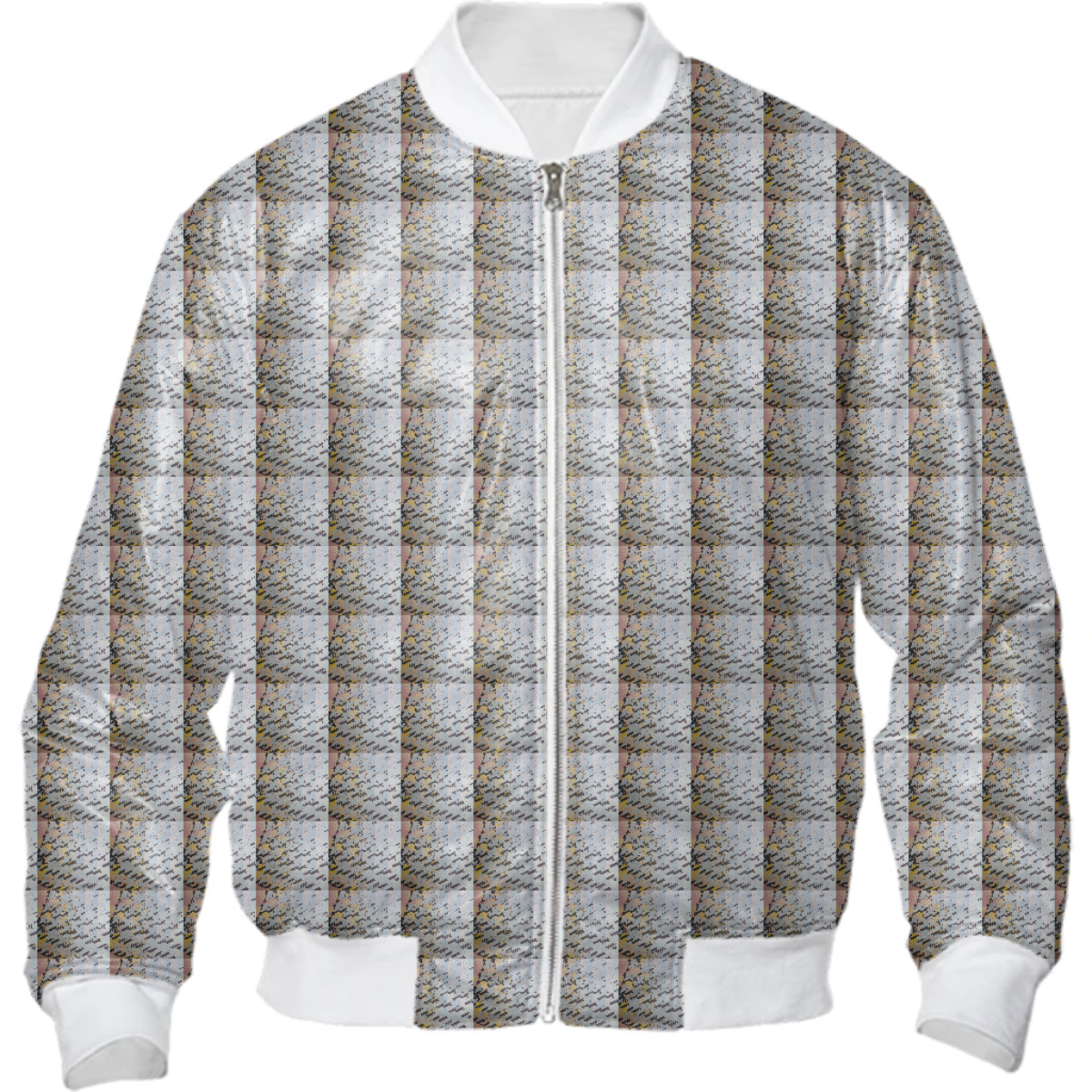 Light weight bombr jacket with your choice of white or black ribbing slight padding zip up front and side pockets. The inside is adorned with PAOM straps for swinging over your shoulders so you dont have to hold it.