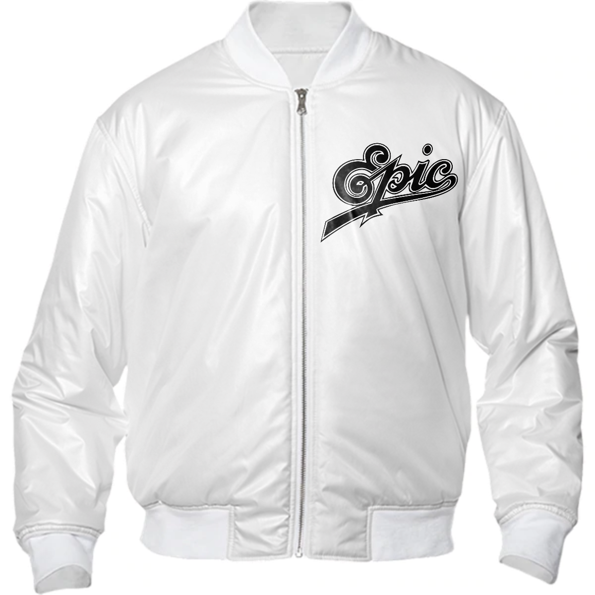 Light weight bombr jacket with your choice of white or black ribbing slight padding zip up front and side pockets. The inside is adorned with PAOM straps for swinging over your shoulders so you dont have to hold it.