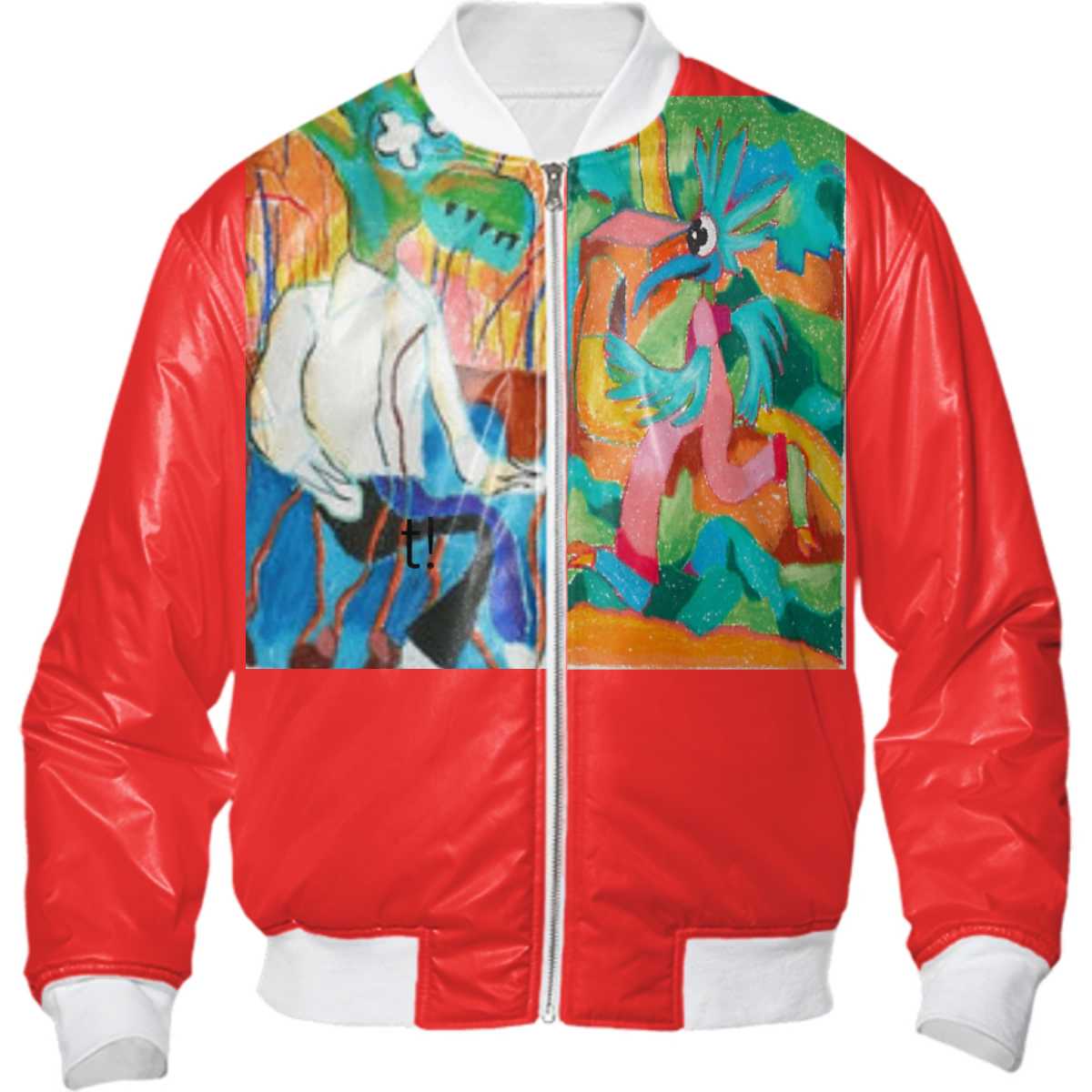 Light weight bombr jacket with your choice of white or black ribbing slight padding zip up front and side pockets. The inside is adorned with PAOM straps for swinging over your shoulders so you dont have to hold it.