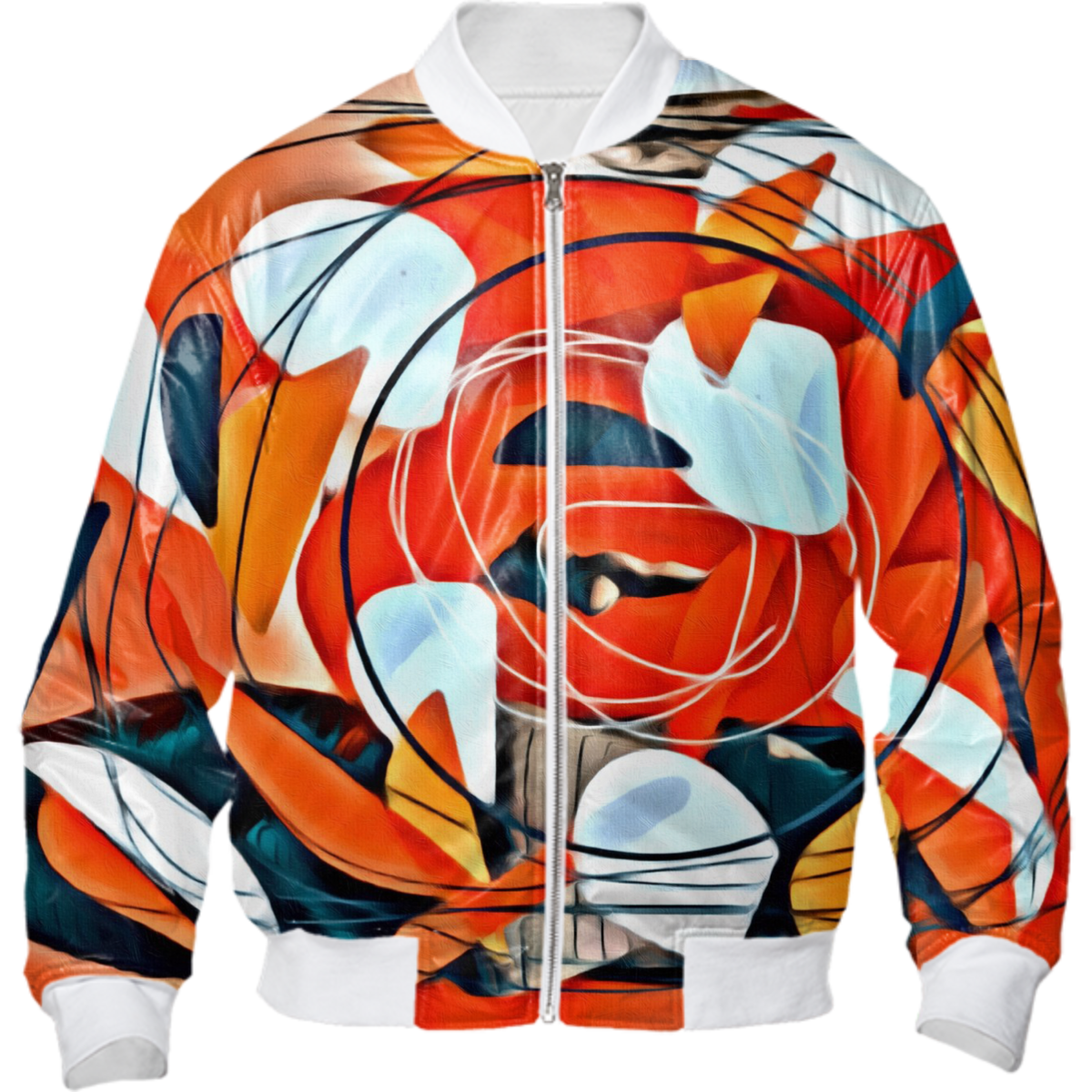 Light weight bombr jacket with your choice of white or black ribbing slight padding zip up front and side pockets. The inside is adorned with PAOM straps for swinging over your shoulders so you dont have to hold it.