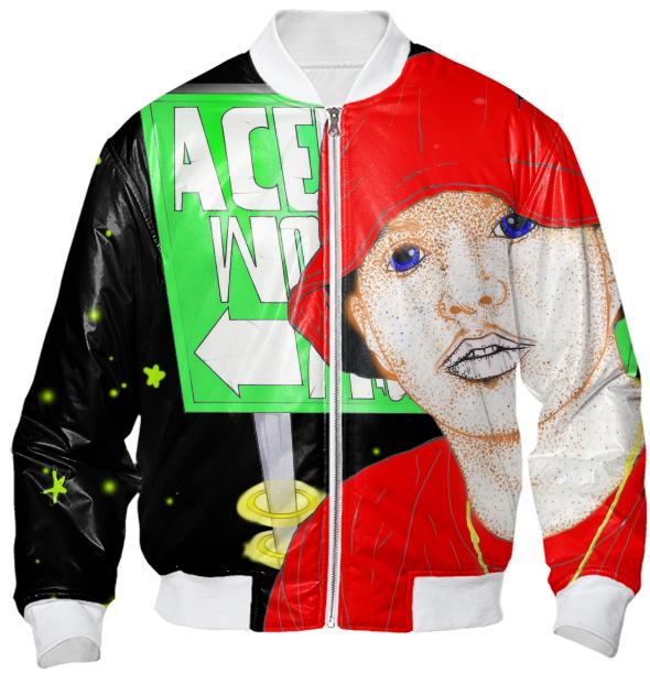 Light weight bombr jacket with your choice of white or black ribbing slight padding zip up front and side pockets. The inside is adorned with PAOM straps for swinging over your shoulders so you dont have to hold it.