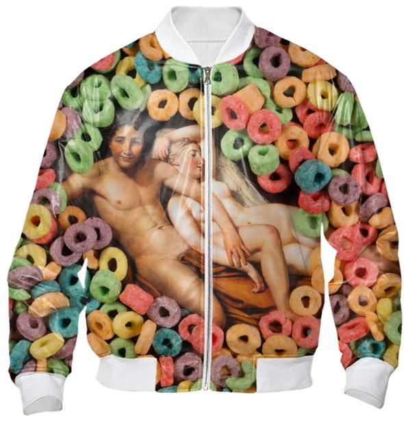 Light weight bombr jacket with your choice of white or black ribbing slight padding zip up front and side pockets. The inside is adorned with PAOM straps for swinging over your shoulders so you dont have to hold it.