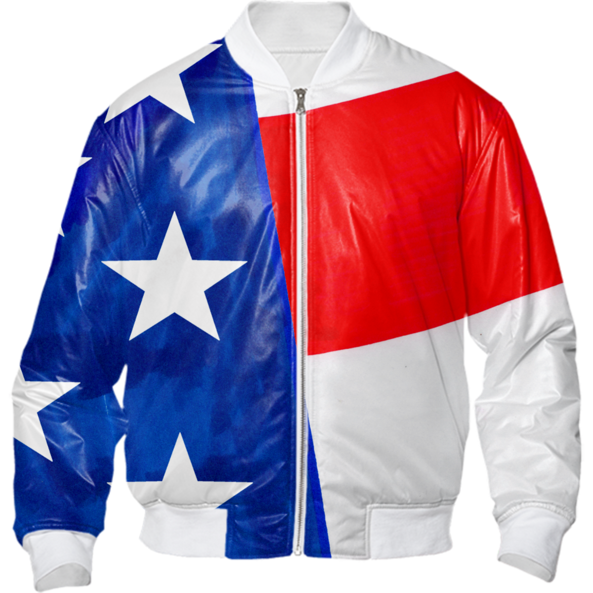 Light weight bombr jacket with your choice of white or black ribbing slight padding zip up front and side pockets. The inside is adorned with PAOM straps for swinging over your shoulders so you dont have to hold it.