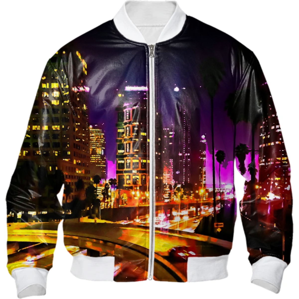 Light weight bombr jacket with your choice of white or black ribbing slight padding zip up front and side pockets. The inside is adorned with PAOM straps for swinging over your shoulders so you dont have to hold it.