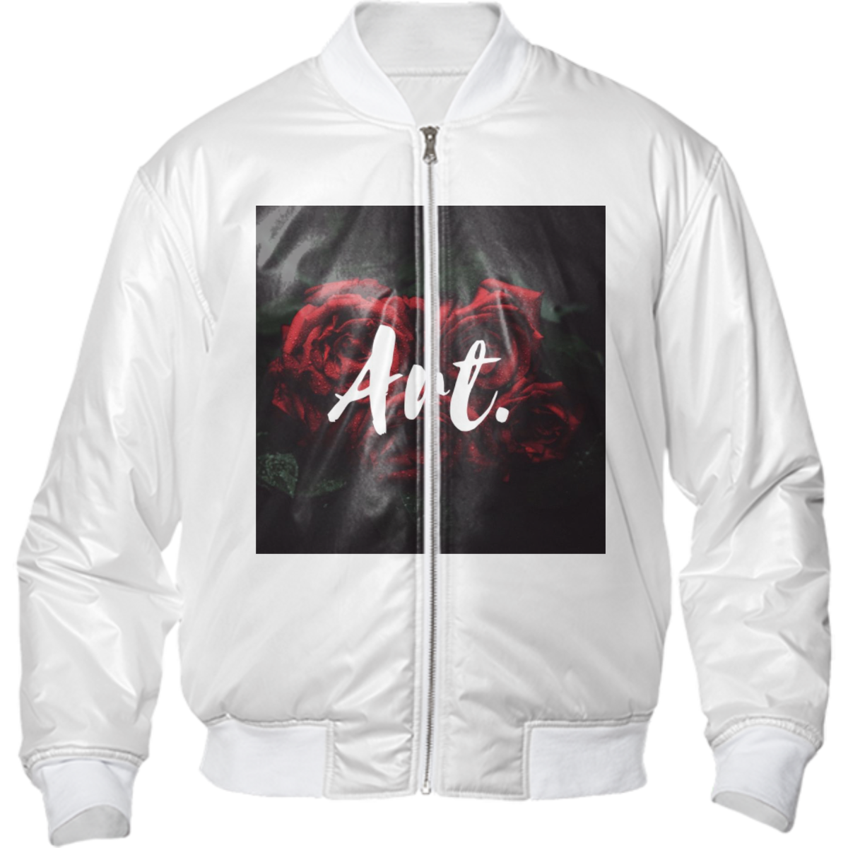 Light weight bombr jacket with your choice of white or black ribbing slight padding zip up front and side pockets. The inside is adorned with PAOM straps for swinging over your shoulders so you dont have to hold it.