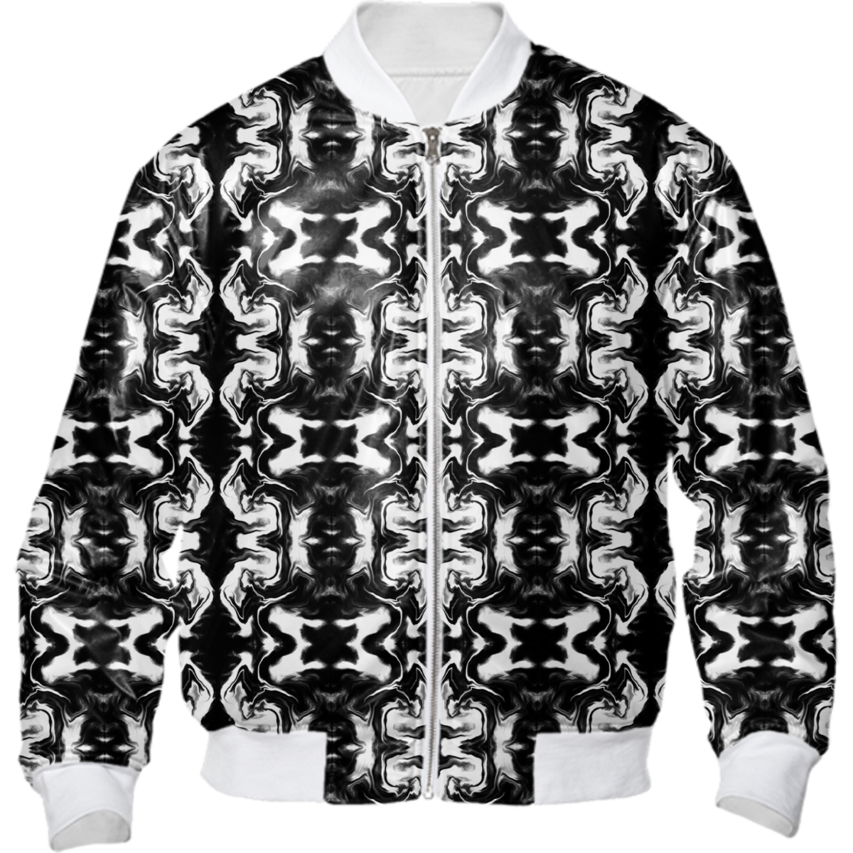Light weight bombr jacket with your choice of white or black ribbing slight padding zip up front and side pockets. The inside is adorned with PAOM straps for swinging over your shoulders so you dont have to hold it.