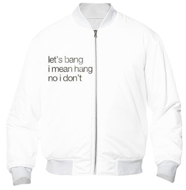 Light weight bombr jacket with your choice of white or black ribbing slight padding zip up front and side pockets. The inside is adorned with PAOM straps for swinging over your shoulders so you dont have to hold it.