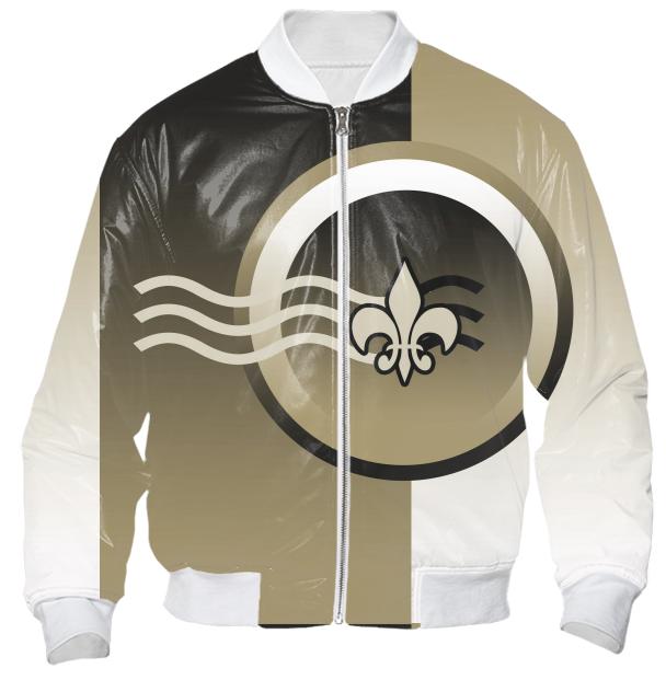 Light weight bombr jacket with your choice of white or black ribbing slight padding zip up front and side pockets. The inside is adorned with PAOM straps for swinging over your shoulders so you dont have to hold it.
