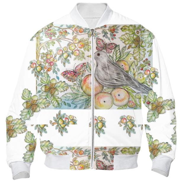 Light weight bombr jacket with your choice of white or black ribbing slight padding zip up front and side pockets. The inside is adorned with PAOM straps for swinging over your shoulders so you dont have to hold it.