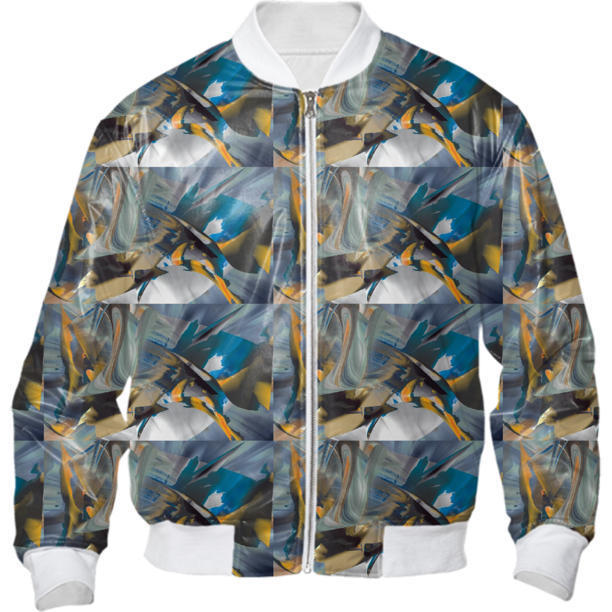 Light weight bombr jacket with your choice of white or black ribbing slight padding zip up front and side pockets. The inside is adorned with PAOM straps for swinging over your shoulders so you dont have to hold it.