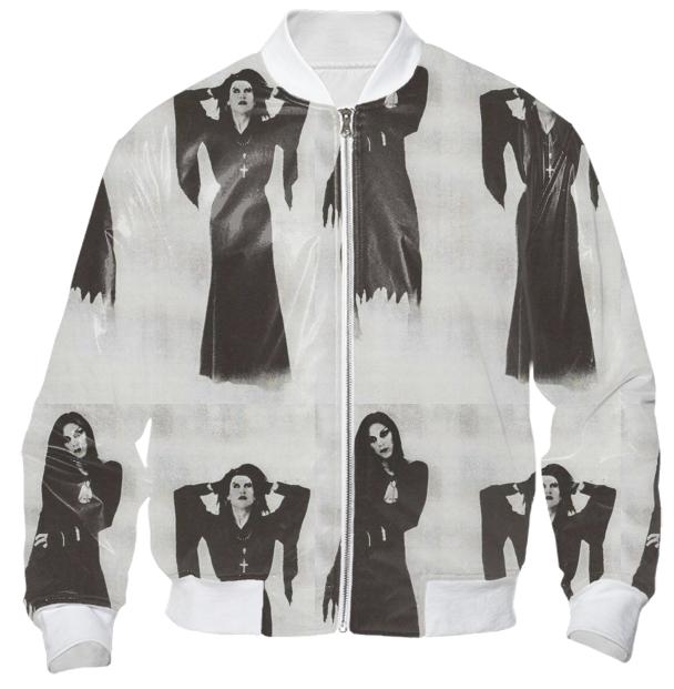 Light weight bombr jacket with your choice of white or black ribbing slight padding zip up front and side pockets. The inside is adorned with PAOM straps for swinging over your shoulders so you dont have to hold it.