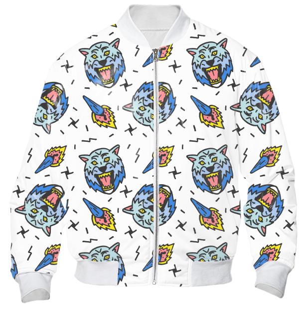Light weight bombr jacket with your choice of white or black ribbing slight padding zip up front and side pockets. The inside is adorned with PAOM straps for swinging over your shoulders so you dont have to hold it.