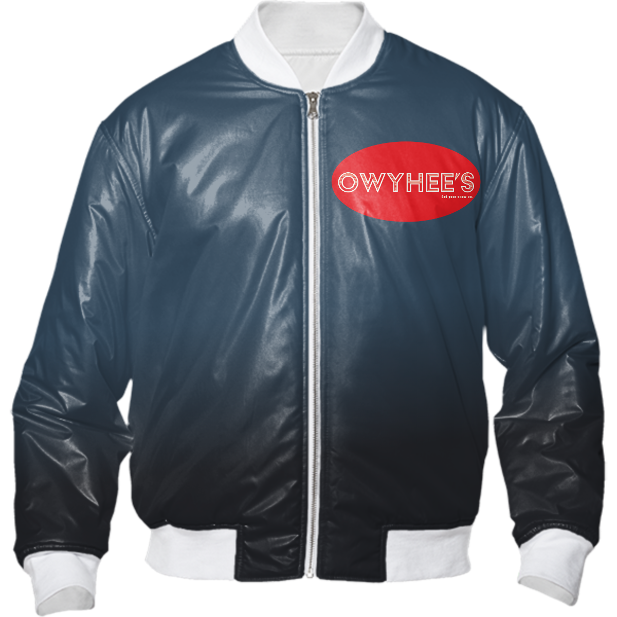 Light weight bombr jacket with your choice of white or black ribbing slight padding zip up front and side pockets. The inside is adorned with PAOM straps for swinging over your shoulders so you dont have to hold it.