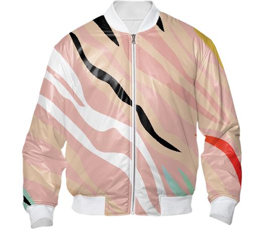 Light weight bombr jacket with your choice of white or black ribbing slight padding zip up front and side pockets. The inside is adorned with PAOM straps for swinging over your shoulders so you dont have to hold it.