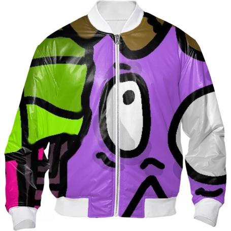Light weight bombr jacket with your choice of white or black ribbing slight padding zip up front and side pockets. The inside is adorned with PAOM straps for swinging over your shoulders so you dont have to hold it.