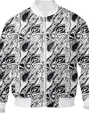 Light weight bombr jacket with your choice of white or black ribbing slight padding zip up front and side pockets. The inside is adorned with PAOM straps for swinging over your shoulders so you dont have to hold it.