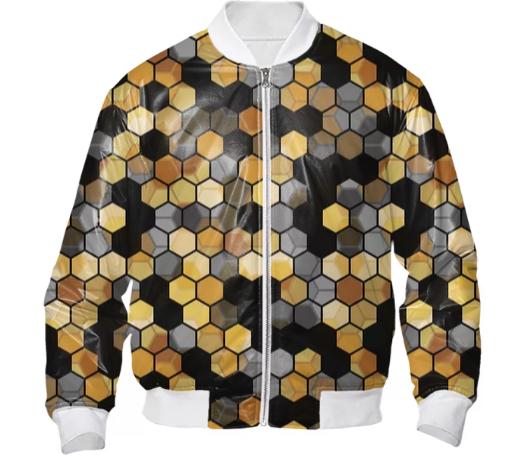 Light weight bombr jacket with your choice of white or black ribbing slight padding zip up front and side pockets. The inside is adorned with PAOM straps for swinging over your shoulders so you dont have to hold it.