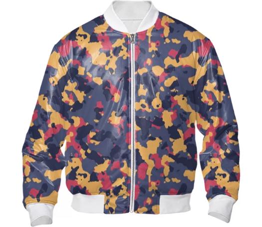 Light weight bombr jacket with your choice of white or black ribbing slight padding zip up front and side pockets. The inside is adorned with PAOM straps for swinging over your shoulders so you dont have to hold it.