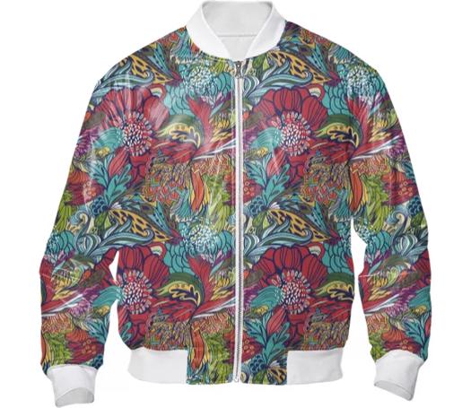 Light weight bombr jacket with your choice of white or black ribbing slight padding zip up front and side pockets. The inside is adorned with PAOM straps for swinging over your shoulders so you dont have to hold it.