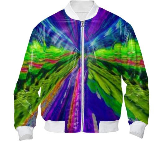 Light weight bombr jacket with your choice of white or black ribbing slight padding zip up front and side pockets. The inside is adorned with PAOM straps for swinging over your shoulders so you dont have to hold it.