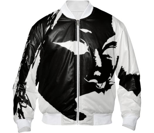 Light weight bombr jacket with your choice of white or black ribbing slight padding zip up front and side pockets. The inside is adorned with PAOM straps for swinging over your shoulders so you dont have to hold it.
